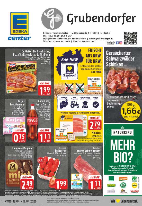 Bei EDEKA Grubendorfer stehen Qualität, Frische und freundlicher Service an erster Stelle. Unser engagiertes Team ist von Montag bis Samstag für Sie da und sorgt dafür, dass Sie immer die besten Lebensmittel, regionale Produkte und besondere Spezialitäten finden.